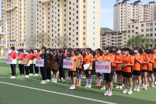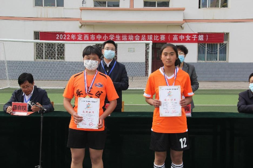 最美不过人间四月天,在这不负春光不负韶华的美好时节,由市教育局和市文体旅游局主办,安定区教育局和安定区文体旅游局承办的2022年定西市中小学生运动会高中女子组足球比赛于4月25日在安定区东关小学圆满落幕。来自全市的4个高中女子代表队经过三天激烈角逐,最终,安定区代表队夺得第一名,临洮县代表队夺得第二名,岷县代表队获得体育道德风尚奖,通渭县代表队获得优秀组织奖。市文体旅游局、市教育局相关负责人参加颁奖仪式。