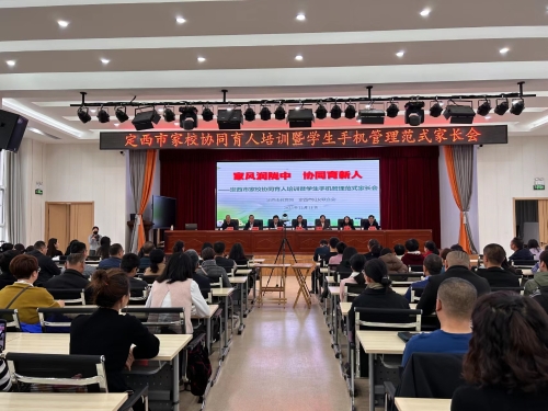11月11日,由定西市教育局携手定西市妇女联合会共同举办了“家风润陇中·协同育新人----家校协同育人培训暨学生手机管理范式家长会”。本次家长会通过“定西微教育”视频号线下、线上同步召开,线下主会场设在安定区大城小学,线上分会场设在全市幼儿园、小学各班级教室,线上线下参会的学生家长、班主任、科任教师共30多万人。